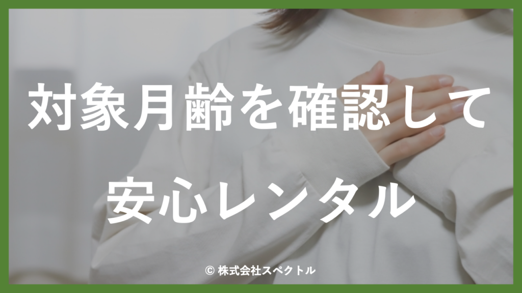 製品の対象年齢や月齢を確認しましょう。B型ベビーカーの対象月齢は腰がすわる生後7ヶ月からが多いですが、コンビなど一部のB型ベビーカーは生後1ヶ月から使えるものも。B型ベビーカーは製品によって対象年齢や月齢が違うので、子供に合った製品を取り扱っているレンタル会社を選ぶことが大切です。